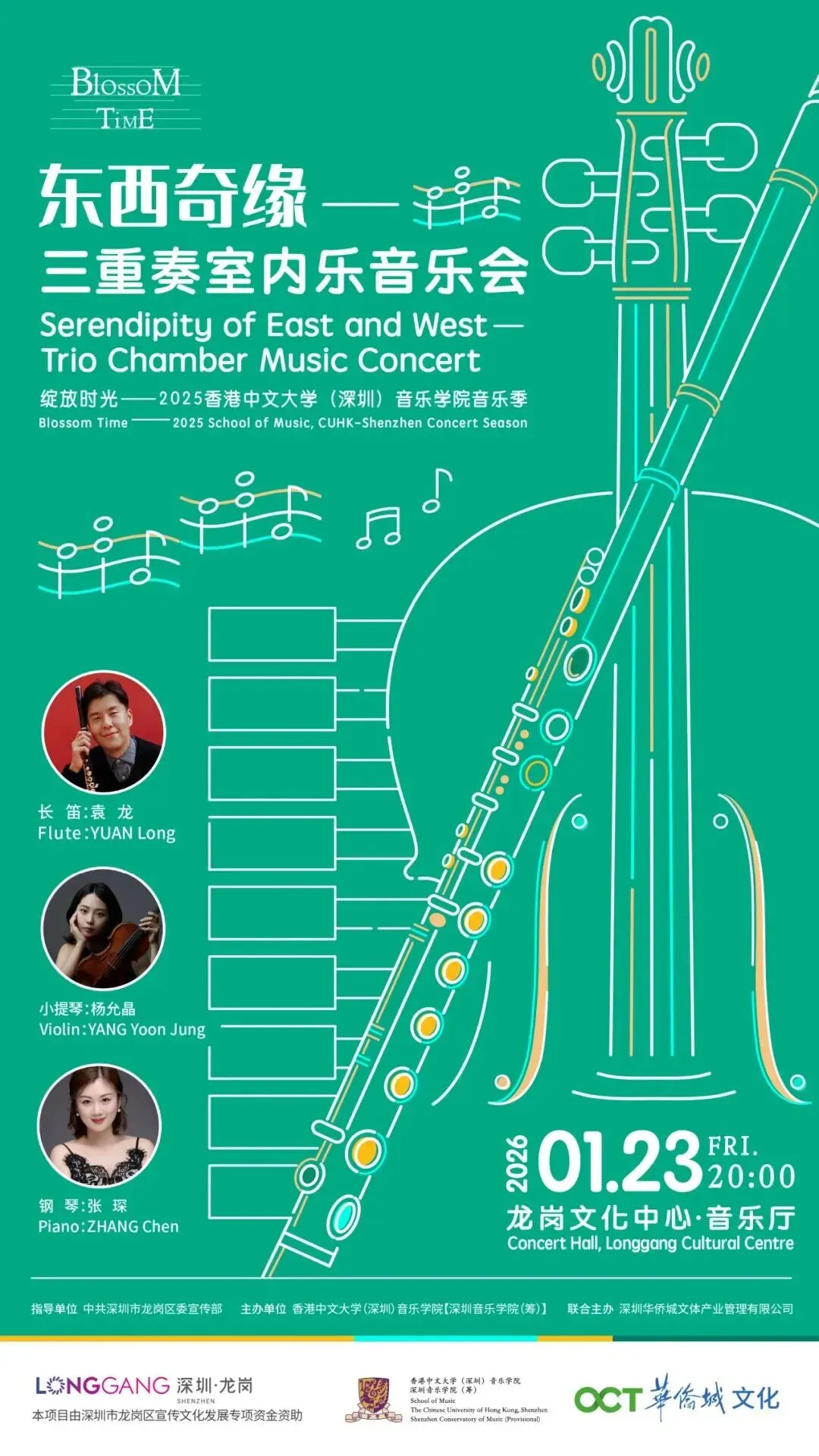从爱德华·埃尔加《爱的致意》到中国经典作品《梁祝》,再到取材自《茶花女》《卡门》《弄臣》的多首歌剧主题幻想曲,绽放时光——香港中文大学(深圳)音乐学院音乐季:《东西奇缘——三重奏室内乐音乐会》将通过二重奏与三重奏的不同组合,充分展现室内乐在音色层次与结构安排上的可能性。