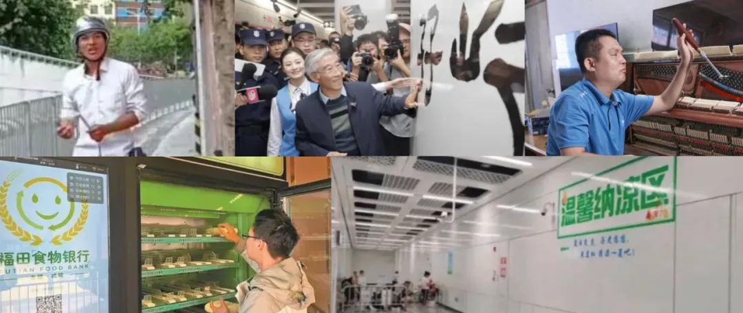 下排从左至右依次是:“食物银行”“深圳地铁纳凉区”