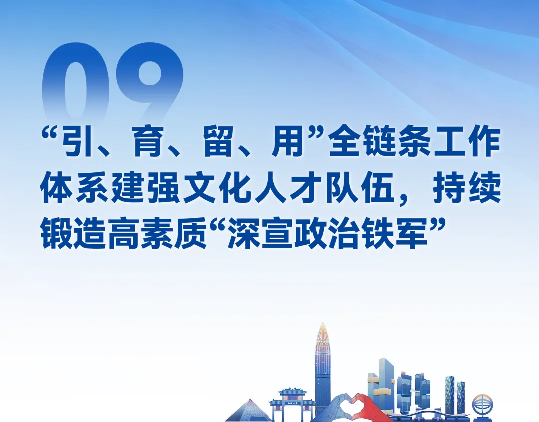 全市宣传思想文化战线坚持以习近平新时代中国特色社会主义思想为指导,深入学习贯彻习近平文化思想,大力弘扬改革开放精神、特区精神,以“走在前、作示范、挑大梁的责任担当”,加快建设高质量文化强市,充分激发全社会文化创新创造活力,勇当新时代中国特色社会主义文化先锋,为深圳走在前列、勇当尖兵提供了有力的思想引领、精神力量和文化滋养。