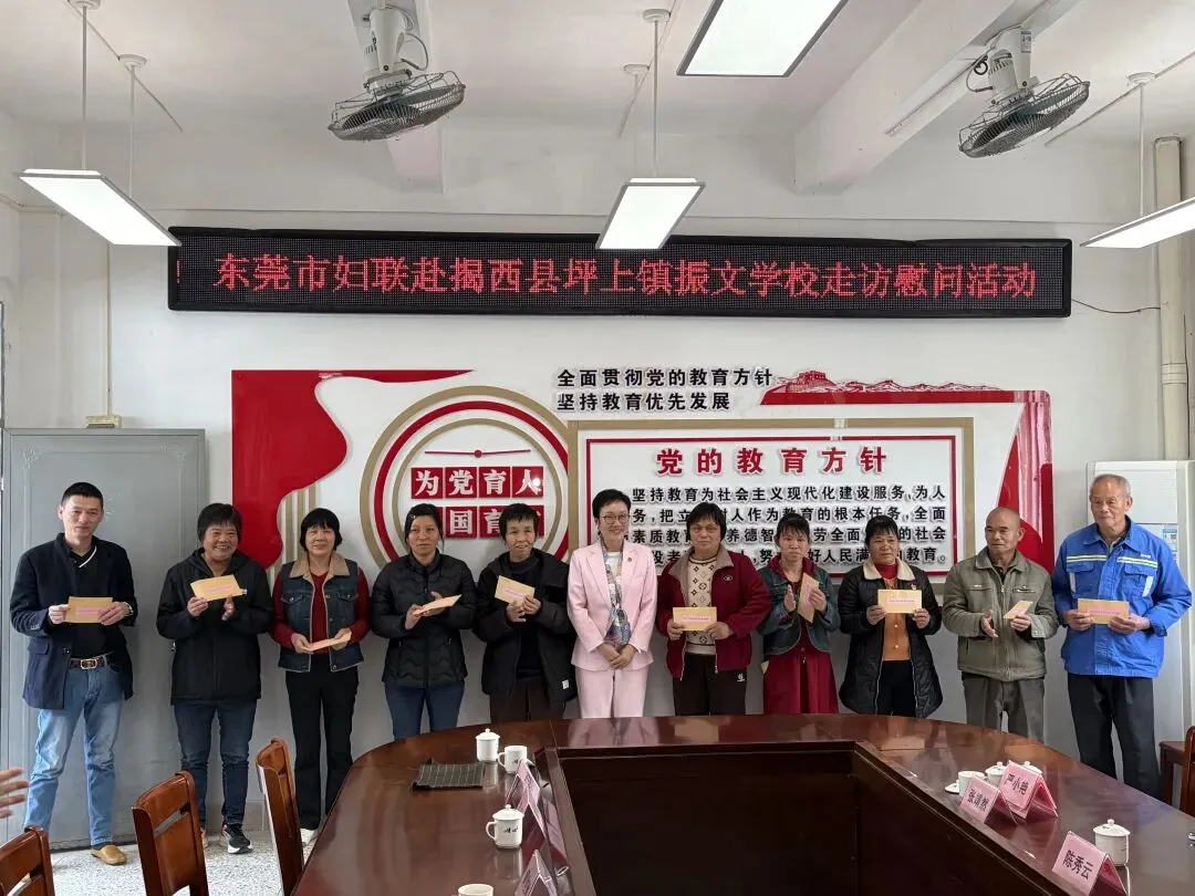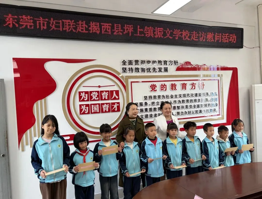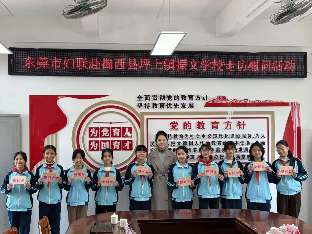 随后,东莞市妇联及爱心企业家代表向坪上镇振文学校的30名困难学生及家长送上了共15000元慰问金。据悉,此次活动不仅为坪上镇振文学校的困难学生带来了物质上的帮助和精神上的鼓舞,充分彰显了“莞揭同心、情暖人心”的深厚情谊。