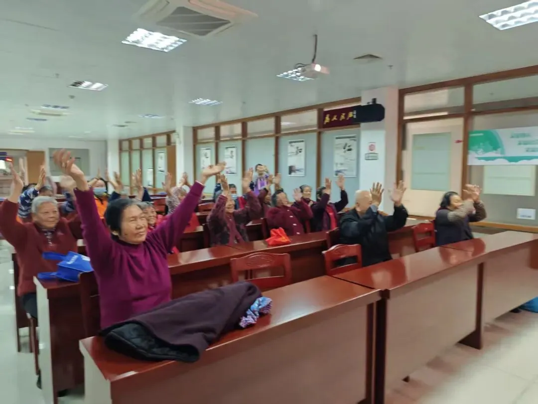 随后,护理人员带领长者们一起学习了简单易行的健脑操和手指操。现场长者们认真学习,跟着节奏活动手指、转动颈部,脸上洋溢着愉悦的笑容。这些简单动作能有效促进血液循环,锻炼大脑功能,深受长者们欢迎。