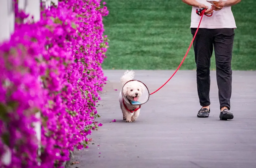 傍晚,居民拖着宠物悠闲散步。(资料图片)