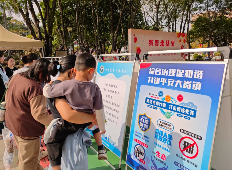 居民带着小朋友在了解反邪、禁毒、防诈等的科学知识。(资料图片)