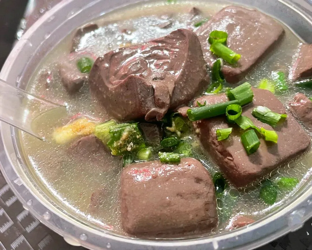 广州,一家在巷子里的小食店,一开门就排队,本地人巨多,都来吃糯米饭和猪红汤,12元就能吃饱