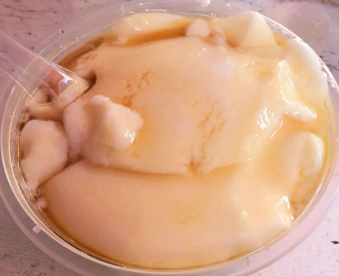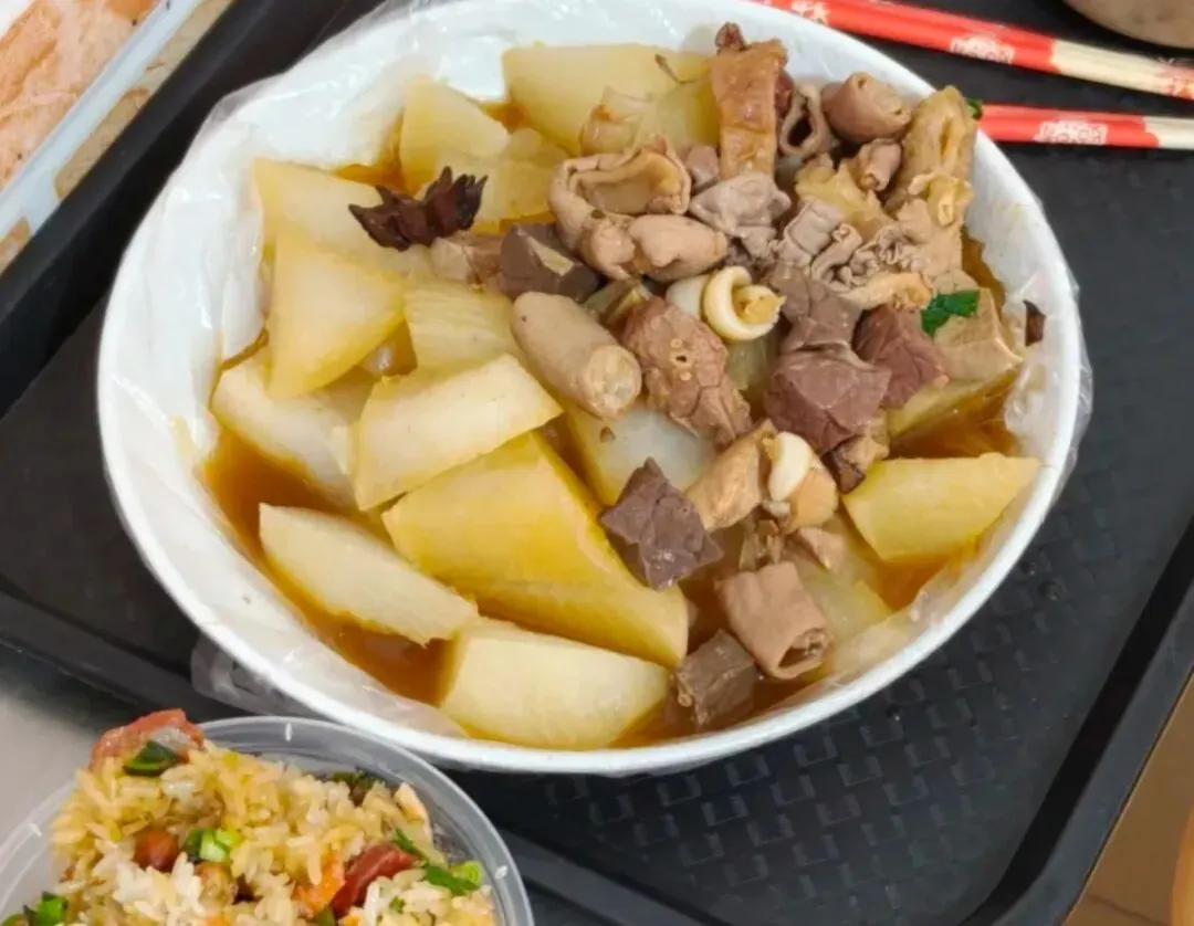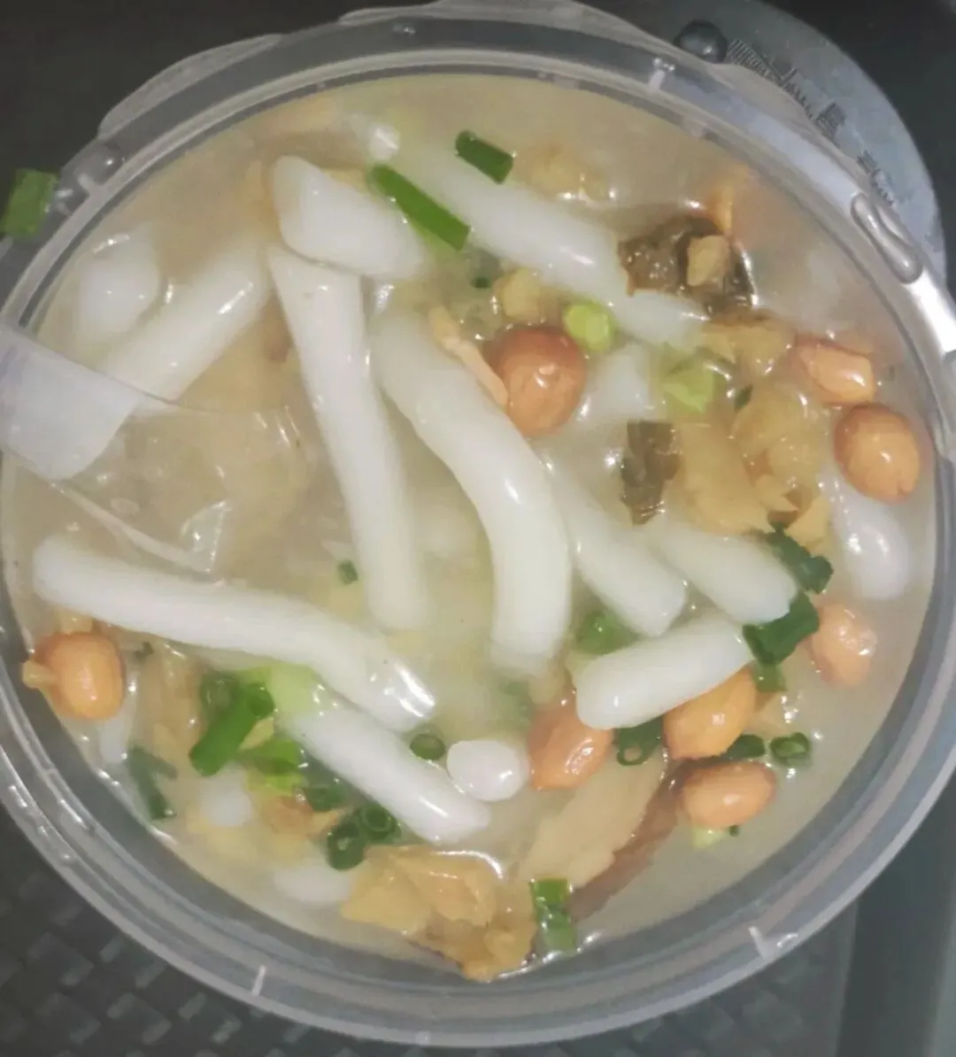 上次去广州,去了一家宝藏苍蝇小馆。年底,妹妹的工作很忙,已经有好长一段时间没有回老家看妈妈了。我们有空,回老家接妈妈一起去了广州。妹妹是真忙,家里乱得也不知道有多久没有收拾了。冰箱里除了即食的东西,菜啊肉啊,什么都没有。我们把家里打扫干净,去买菜回来煮饭,吃了饭,下午妹妹出去办事,我们也跟着她一起出去帮忙。事情办完了,她带着我们拐进了一条巷子里,说带我们吃这里很好吃的小食。“就前面那家店吗?”我望向那黑乎乎的人头,在慢慢地往前移动的长龙。“对,就是那里。每次,我过来这边办事,都来这里吃。等会,你们尝尝。”“糯米饭,猪红汤,濑粉,萝卜牛杂,豆腐花……对了,番薯糖水也有。味道都不错”十来分钟,排到我们了,妹妹经常来吃,而且知道妈妈和我的口味,由她来点单。“三碗糯米饭,三碗猪红汤,一份萝卜牛杂,一碗濑粉,一碗豆腐花,一碗番薯糖水。”“不要点太多了,我们才三个人,吃不完这么多,太浪费了。”店主阿姨她们动作很快,三下五除二,就把食物都给我们端过来了。还别说,在外面跑了一个下午,有点饿了,尤其看到这么多好吃的。先吃腊味糯米饭把肚子填饱,糯米软软的,但是不粘牙,里面有腊肠和腊肉,切成薄片,广式的味道,小小一只的虾米有点野的鲜香,花生,还有葱花的点缀,看来来很有好吃。等不及了,吃一口,食材的各种味道与糯米饭渗在一起了,咸、鲜、香。再吃一口,有点油,肚子饿,一下子把一碗吃完了。不知道是不是还另外放了油,再加上腊味渗到饭里的油,本是软糯的糯米饭,吃完一碗,才发觉腻了。碗里的猪红有好几块,还挺大块的,还没有吃,就闻到了胡椒粉的味道,吃一块,好滑,嫩嫩的,汤有点胡椒的辣味。吃完这一碗,没有想到刚才的腻感,好像没有了。不过有点饱了,妹妹让我尝尝这里的传统濑粉,汤看着很浓,夹一筷子,咬一下,有点硬,不知道是用什么粉做的,我觉得一般。豆腐花,我们要的是甜的,滑滑、嫩嫩,不青涩,一股黄豆的香味,还不错。已经很饱了,妹妹还让我尝尝番薯糖水和牛杂萝卜。行,我再吃一点。番薯糖水,不会太甜,但是番薯不糯,一咬下去就散开,不是很喜欢。牛杂萝卜,没有煮得太软,有点韧,味道咸了一点了。萝卜虽然还是整块的,但是很入味,如果喜欢萝卜那种软软烂烂的口感,那这个不合适。这里的东西是真便宜,吃了几样,觉得腊味糯米饭、猪红肠、豆腐花比较好吃,难怪有这么多人来排队。
