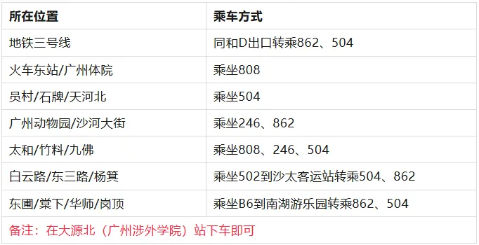 市外交通指引:广州东站 →地铁3号线(机场北(2号航站楼)方向)→同和站D口 →站外步行200米 →同和2站 →乘坐504路 →大源北站下车 →步行300米 →到校* 全日制封闭式管理,来校咨询了解、参观、报名者,至少提前半天预约。