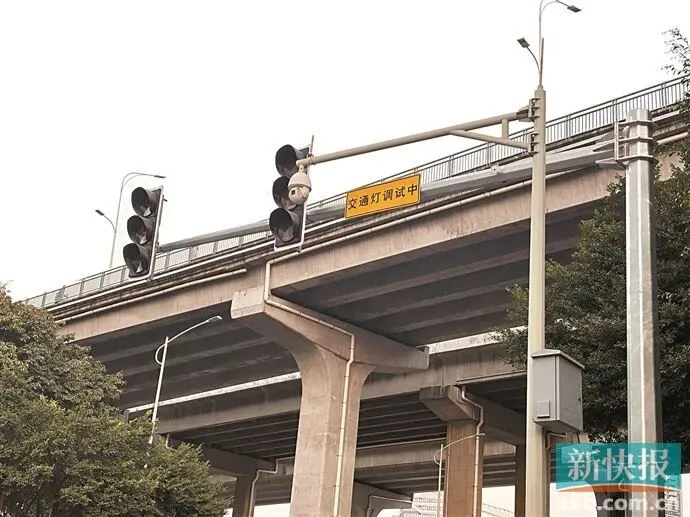 近日,新快报记者两次前往现场,该丁字路口目前仍然悬挂“交通灯调试中”的标识,暂时没有发现交通信号灯编号,处于未启用状态。沥滘路西行约150米处的另一路口有一组正常使用中的交通信号灯。
