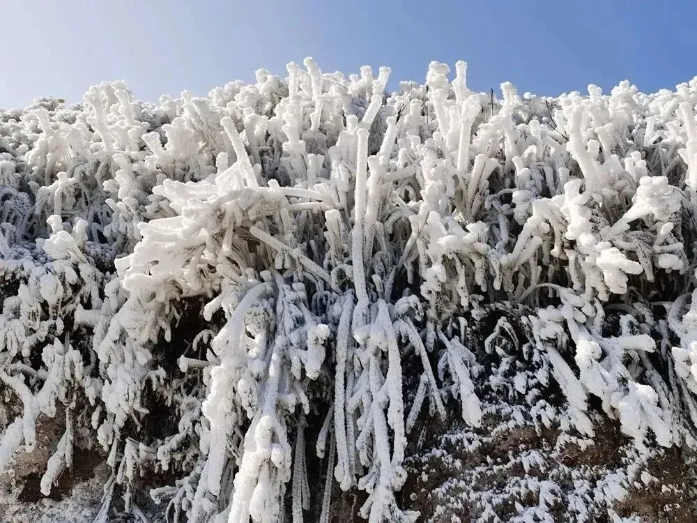 09:00 左右到达云冰山风景区,乘景区环保车前往南国雪乡之称的【云冰山景区】于湘粤交界的云冰山,以云海,冰雪奇观而得名,一览众山小的梦幻云海,奇特冰挂堪称一绝;每年的"雾凇 雪淞 雪景"奇观轮番上阵,素有南方"北国风光"的美誉(另外说明:如遇道路结冰等恶劣天气 ,景区为安全起见,云冰山中转车可能暂停且费用没的退,徒步上顶约3公里40分钟左右);