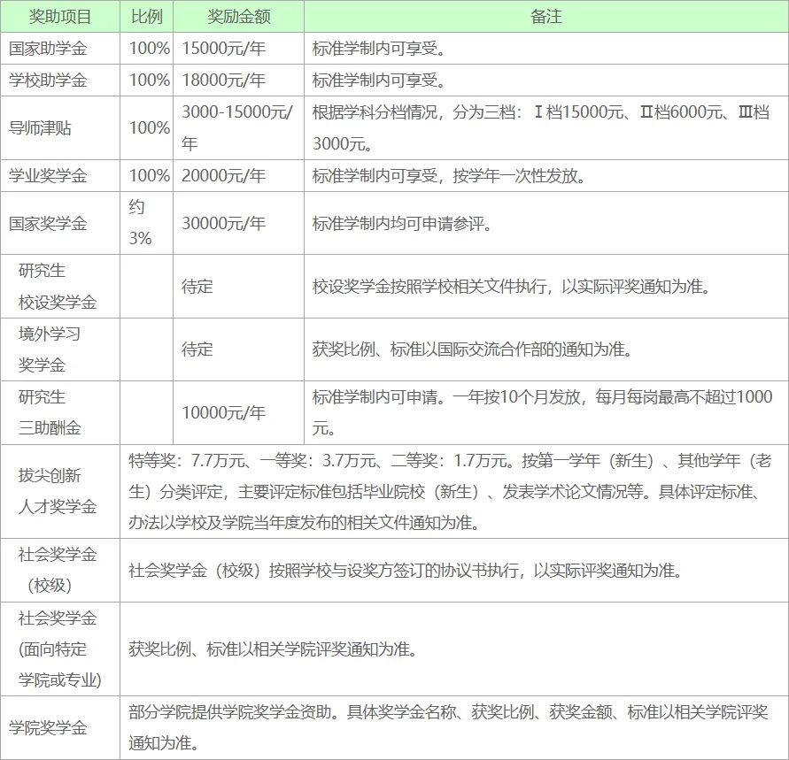 *表中各类奖助学金评选细则以学校相关文件及通知为准。