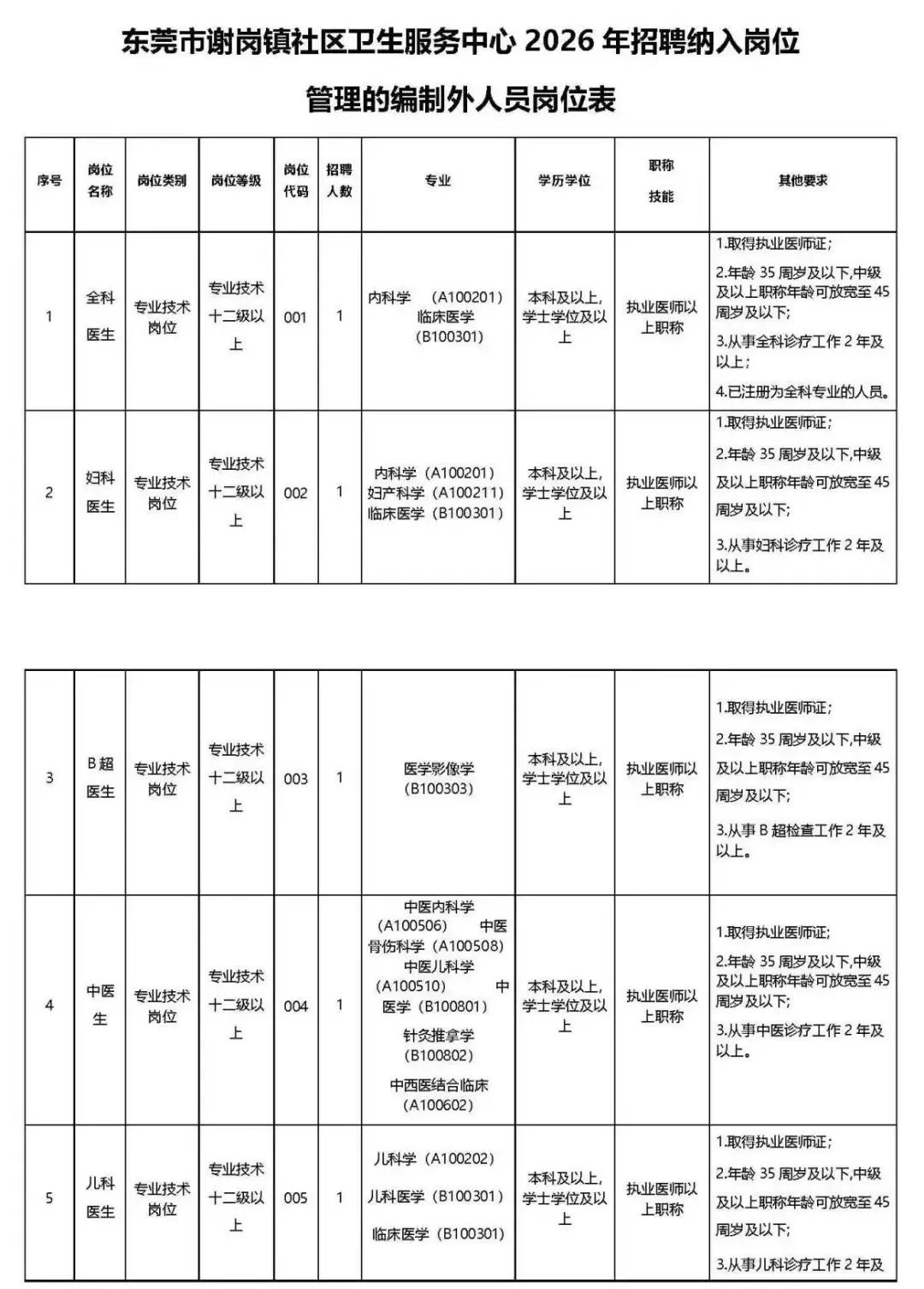 东莞市谢岗镇社区卫生服务中心是东莞市谢岗镇人民政府下属公益一类事业单位。本次招聘全科医生1名;妇科医生1名;中医生1名;口腔科医生1名;儿科医生1名;公卫医生1名;B超医生1名,具体岗位情况和要求见岗位表。