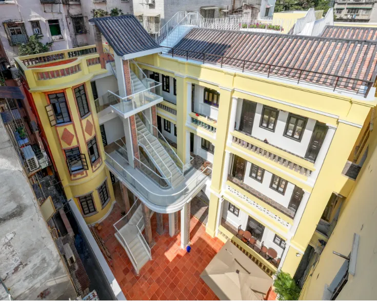 文德东路29号(文德园)就是该区域首个活化运营的项目。该历史公房紧邻周恩来总理居住生活过的文德楼,危旧破败且长期空置。广州市城市规划设计有限公司采用“新旧融合”原则,在彰显历史风貌的同时,也营造出适应新功能业态的现代化空间,按照“运营前置”理念,将首层改造为集展览、文创、咖啡于一体的复合公共空间,并提出“以修代租”这一公房盘活的创新模式,为区域历史公房盘活提供了“投资-修缮-运营”系统性解决方案。焕新后的文德园将成为促进中心的常设办公地。