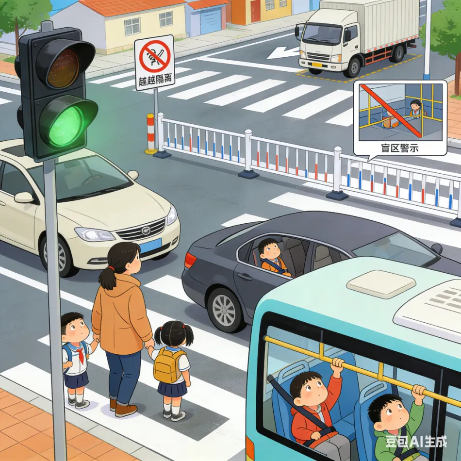 寒假期间,出行频繁。请家长教育并监督孩子遵守交通规则,外出不在马路上嬉戏打闹,不闯红灯,不翻越隔离栏。未满12周岁不骑自行车上路,未满16周岁不骑电动自行车,乘坐私家车要系好安全带,不坐副驾驶座。远离汽车盲区,特别是货车、公交车等大型车辆。乘坐公共交通工具时,有序上下,不将身体任何部位伸出窗外。