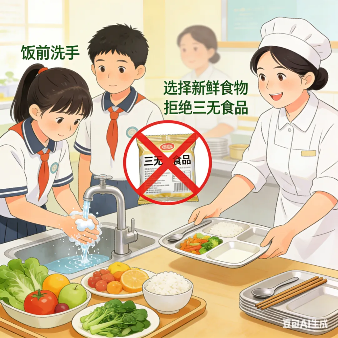 寒假以及“春节”期间,亲朋好友聚餐频繁,食品安全显得尤为重要。请家长教导孩子保持饮食均衡、营养全面,多食用新鲜的蔬菜水果,减少油腻、辛辣食物的摄入,不饮用生水,避免暴饮暴食,不吃生冷、不干净的食物,拒绝食用“三无”食品和过期食品。同时,要养成良好的卫生习惯,饭前便后务必洗手。家长在处理食材时,需将生熟食材分开,并且要确保食物烧熟煮透。