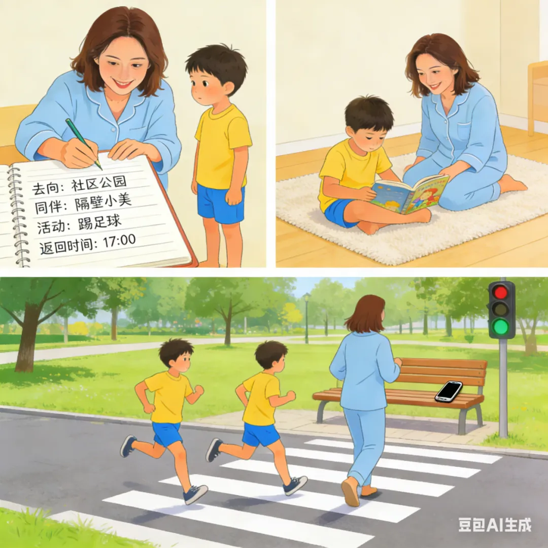 家长作为孩子的第一任老师,同时也是孩子安全的首要责任人。请各位家长务必切实做到孩子外出“四知”,也就是“知去向、知同伴、知活动内容、知返回时间”,从而避免出现监管空白与盲区。家长们应放下手中的手机,多与孩子开展亲子阅读、户外运动等高质量的互动活动。此外,要以身作则,通过自身遵守安全规则的实际行动,为孩子树立起最佳的榜样。