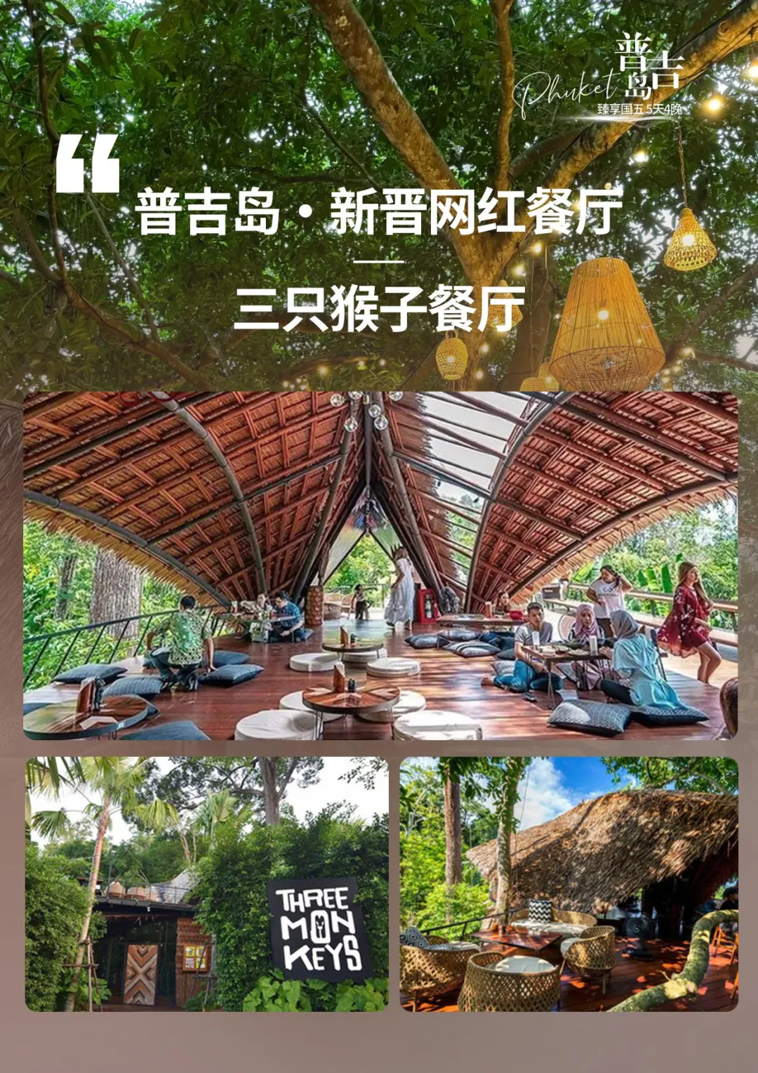 【悬崖山顶餐厅普吉岛树屋餐厅 Three Monkeys】什么!泰国惊现三只孙悟空?Three Monkeys Restaurant,三只猴子是普吉岛一家新晋网红餐厅,集酒吧、餐厅和咖啡厅于一体。在这里,仿佛置身于绿叶仙踪一样,是隐藏的美味胜地!来一杯下午茶,把好看的衣服穿起来,帽子戴起来,各种造型摆起来,你就是新一届的 INS 人气博主~