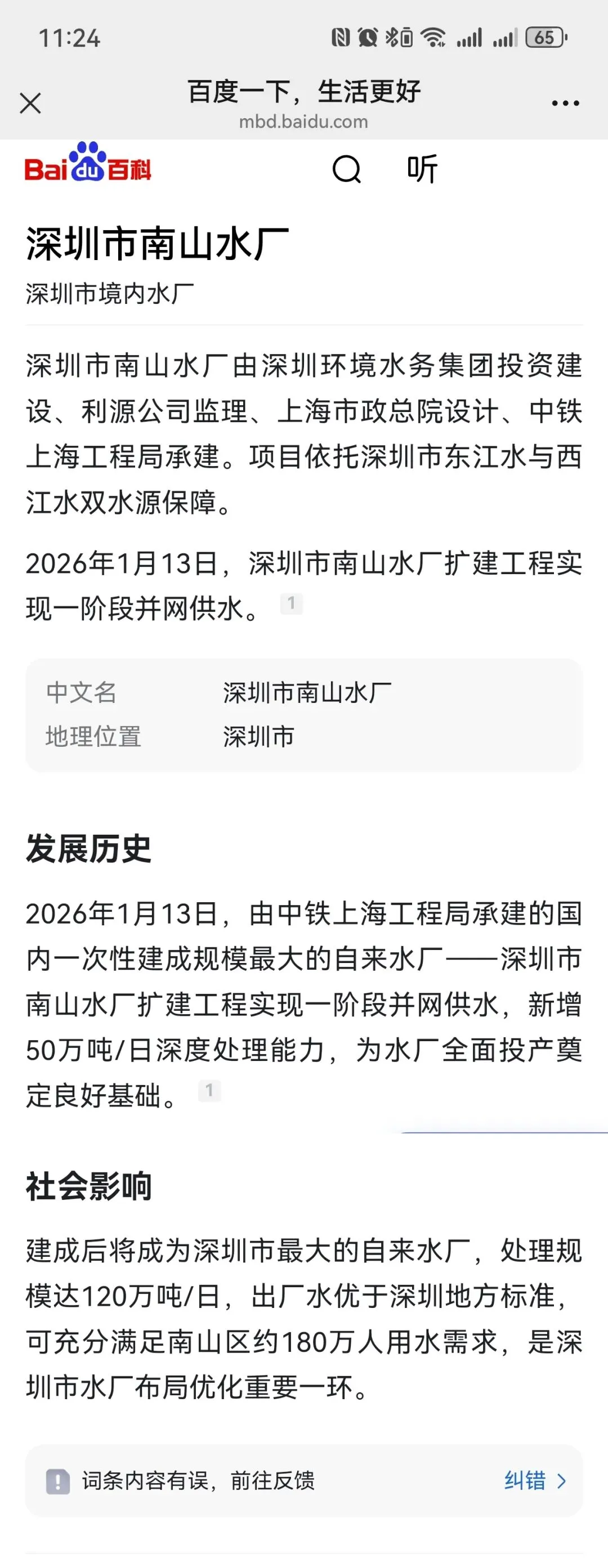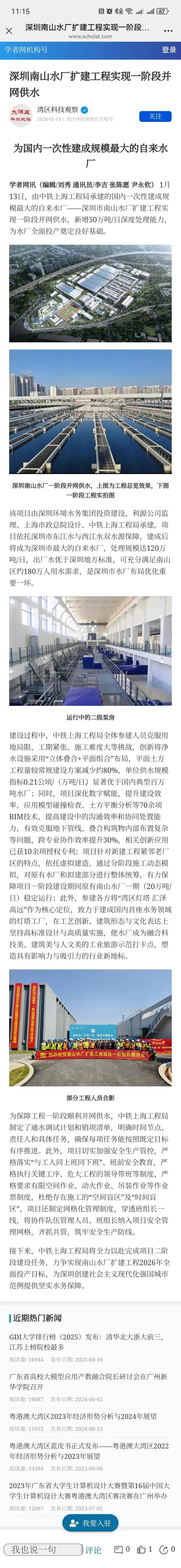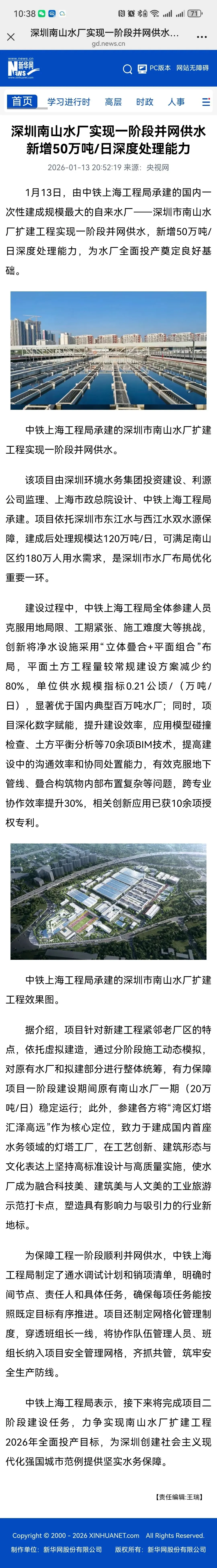 中国新闻网广东:深圳优化水厂布局 南山水厂实现一阶段并网供水