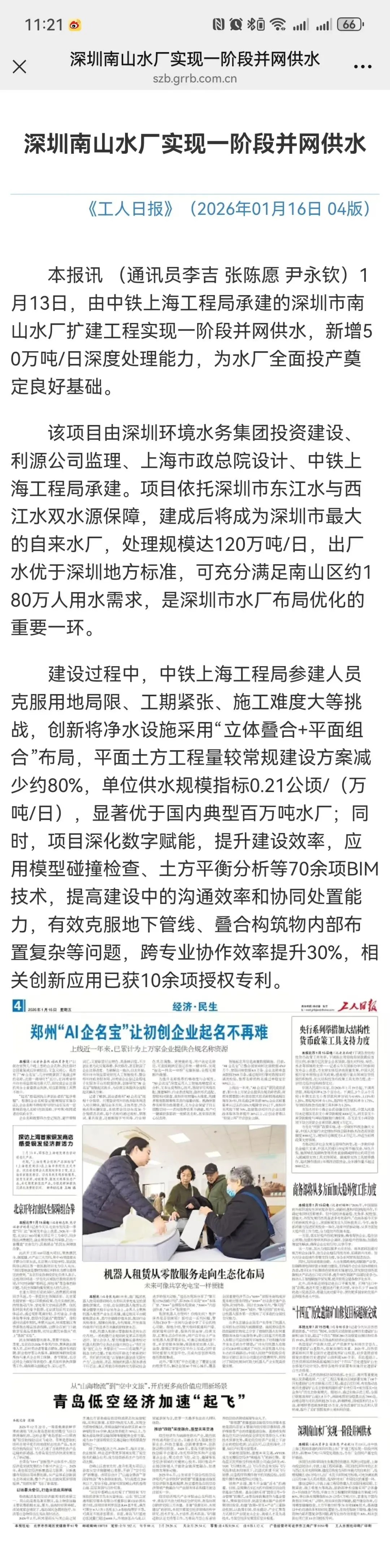 【媒体聚焦】深圳南山水厂扩建工程一阶段并网供水引发媒体关注