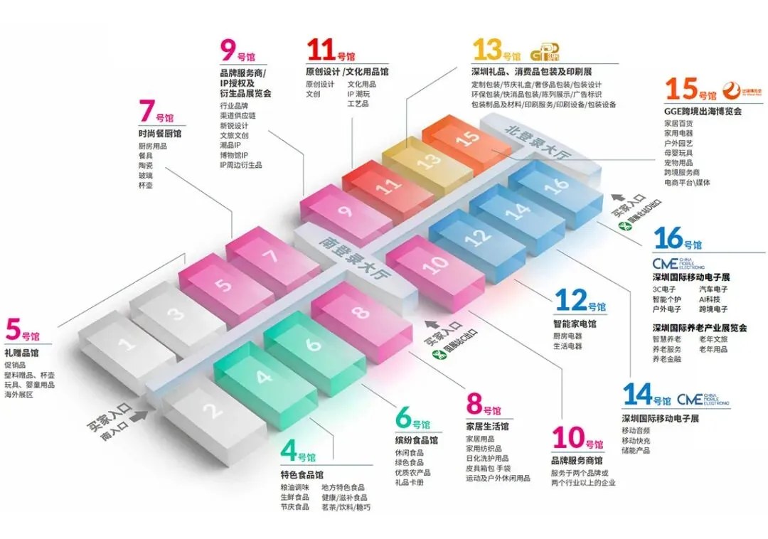 7号馆:时尚餐厨馆8号馆:家居生活馆9号馆:品牌服务商馆/IP授权及衍生品馆10号馆:品牌服务商馆11号馆:原创设计/文化用品馆12号馆:智能家电馆
