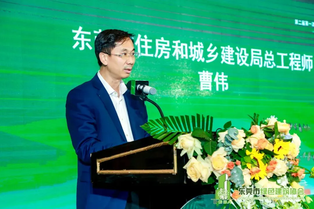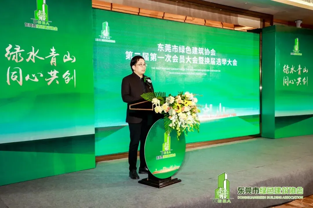 曹伟总工程师在致辞中表示,代表市住建局祝贺邓建军会长连任东莞市绿色建筑协会会长,对我会过去五年在绿色建筑产业的建设、应用与推广方面的工作表示肯定,期望我会在新一届领导班子的带领下,继续为我市推进建筑节能减排和绿色建筑事业的发展做出更大贡献。