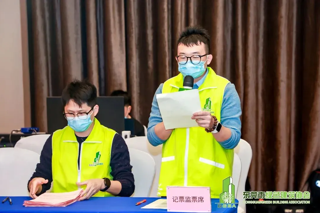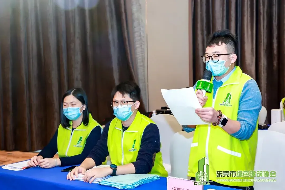 大会主持人、我会副会长左九玲宣读审核新会员入会、协会新地址、协会新章程、《东莞市绿色建筑协会第二届换届选举办法》、表决监票、计票和唱票人。全体与会会员对上述内容表决通过。