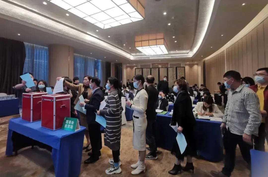 投票环节,与会会员及代表认真填写选票并依次排队往投票箱放入神圣的一票。