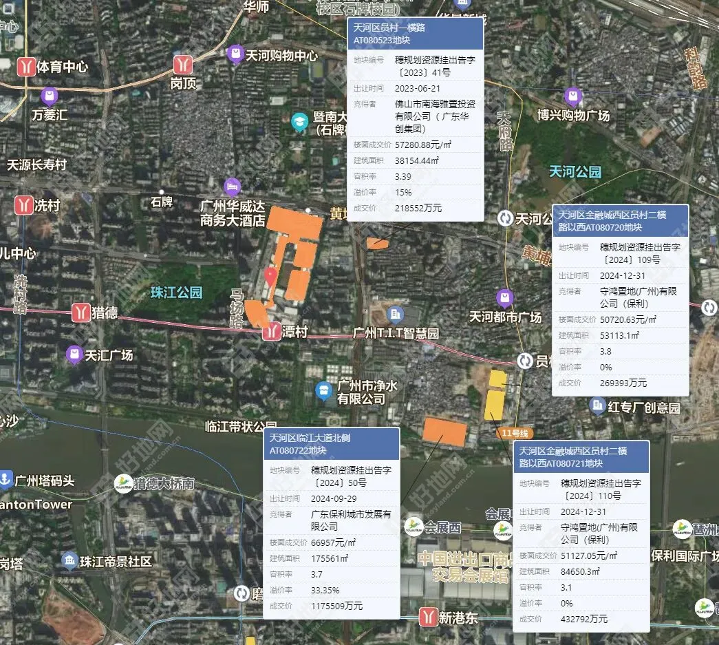 地块位于黄埔大道以南、马场路以东,出让宗地面积174007.24㎡,其中地上宗地面积153065.98㎡,综合容积率3.7,地上建筑面积566962㎡(不含中小学、幼儿园)。
