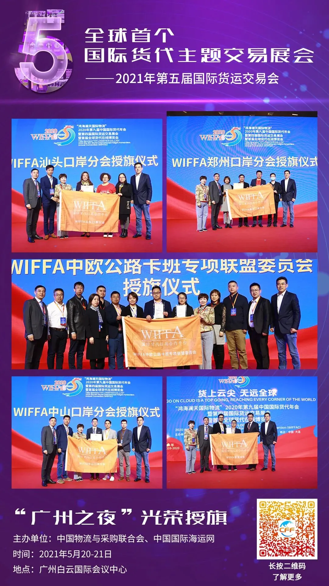 展会定位:为国际货代和上下游产业提供交易;交易类别:货代与货代;货代与货主;货代与物流,货代与车辆、货代与储运、货代与科技;交易范围:订舱、代理、通关、场地、物流、仓储、危品、大件、散杂、跨境、冷藏、集卡。“第五届国际货运交易会(CFF)”将于2021年5月20-21日在广州白云会议中心举行,众多参展、观展商现场洽谈对接。扫码查看参展商名录