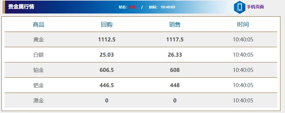 *以上价格 仅供参考,以融通金六约 实时报价盘为准。