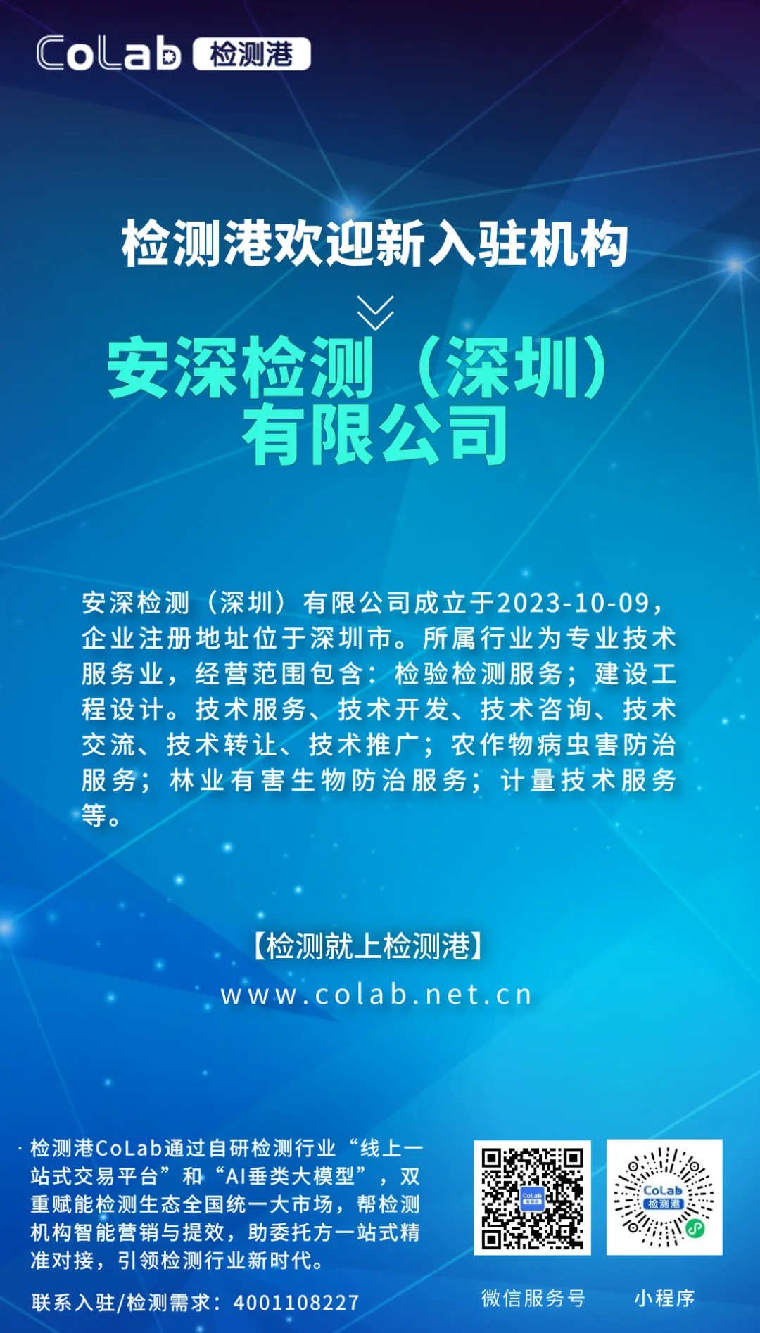 安深检测(深圳)有限公司入驻检测港,开启数智化获客新时代!