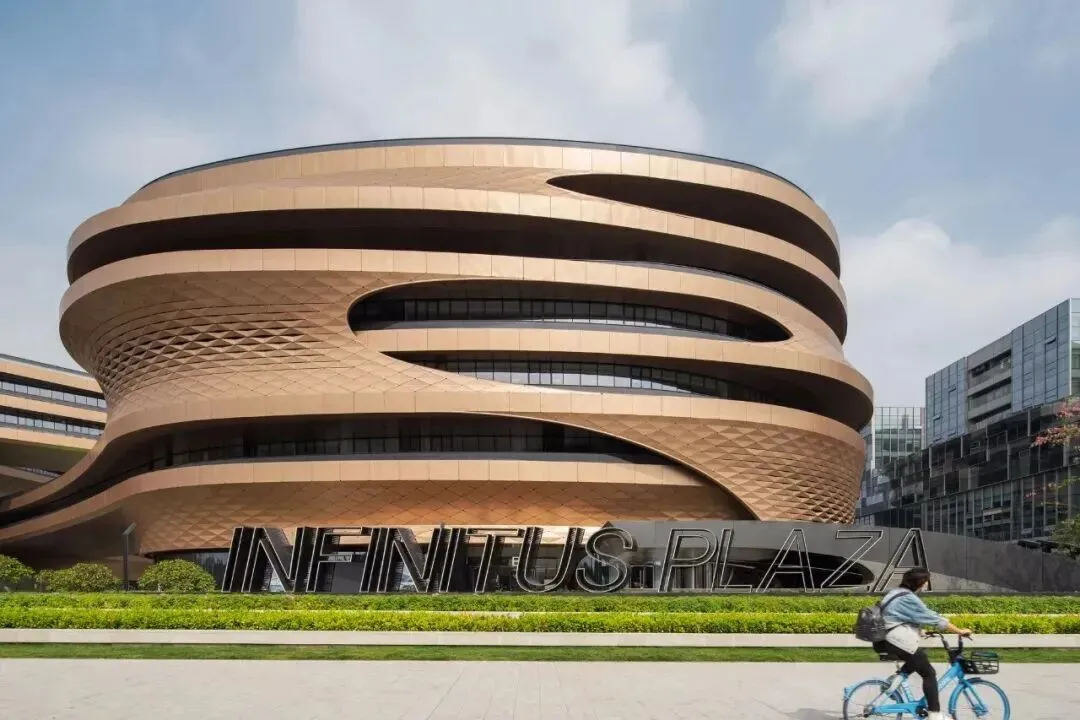 该项目由国际知名建筑设计师扎哈·哈迪德事务所设计,其建筑形态创新地提取了岭南传统建筑的围合精髓,通过一系列“无限环”造型有机连接两个地块,形成独特的“∞”形空间结构环绕中央庭院。这一设计不仅创造了开放流畅的交流空间,更在建筑基因层面融入了可持续发展理念:环绕式布局优化了自然采光与通风效率,中央庭院构建了生态微气候系统,曲线形态减少了不利风环境影响。建筑设计与绿色性能在此实现了从美学到科学的完整统一。