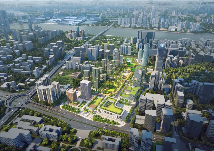 创新融入“公园+、商业+、体育+”理念,在中部开敞大公园周边布局嵌入式高端消费、文化体验与社交互动场景,让消费成为“生活的自然延伸”。此外,引入数字办公、未来社区、智慧运动等新兴功能,推动片区由“日间高峰”向“昼夜协同、全时魅力”的活力城区转型。