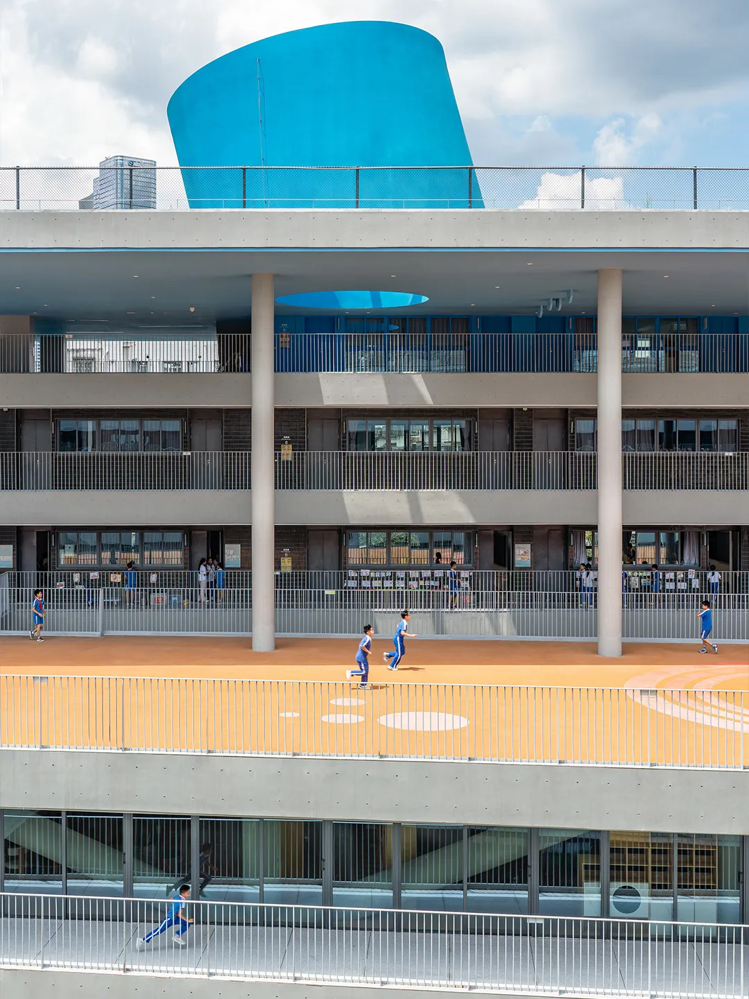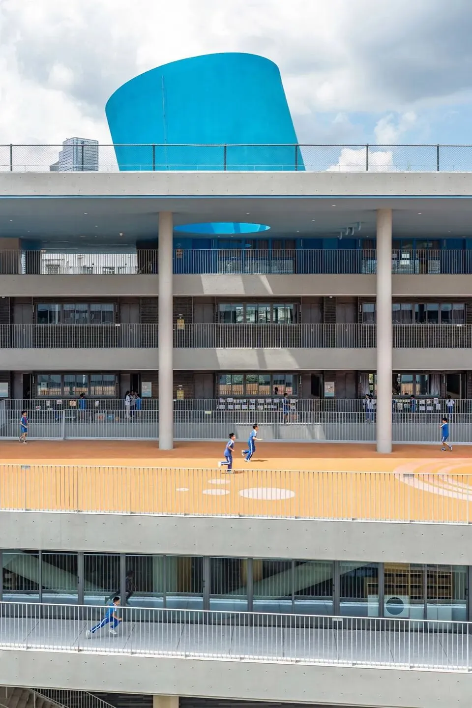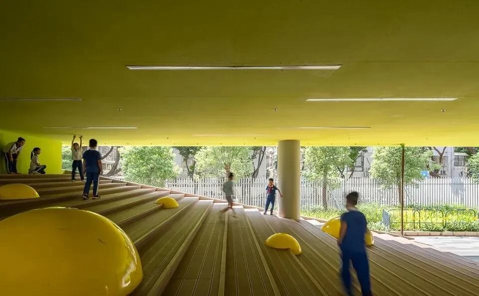 课间十分钟通常被认为是“无法有效利用的碎片时间”,但在绿洲小学,这段短暂的时间被赋予了新的价值。学生只需几步就能从教室来到平台,享受阳光、新鲜空气和短暂的游戏。这种设计深刻理解儿童行为特征——他们需要频繁的休息和活动来维持注意力,而非长时间困在固定座位上。
