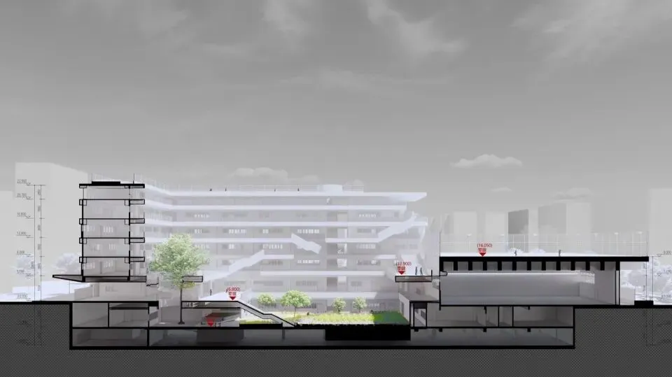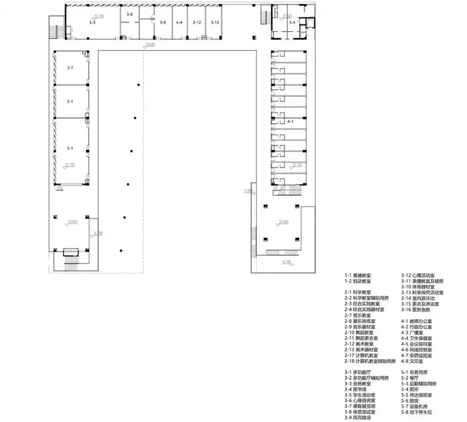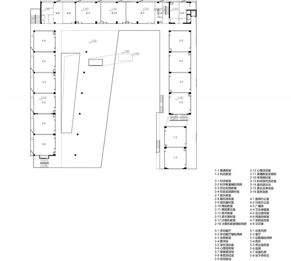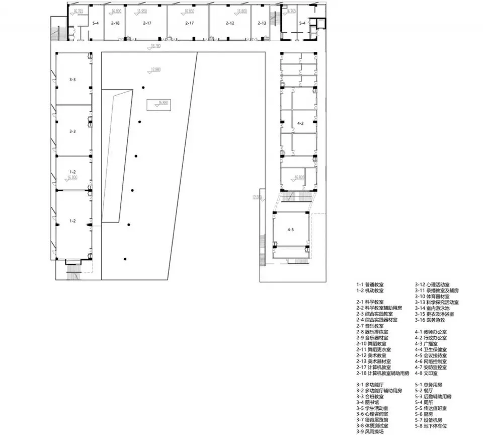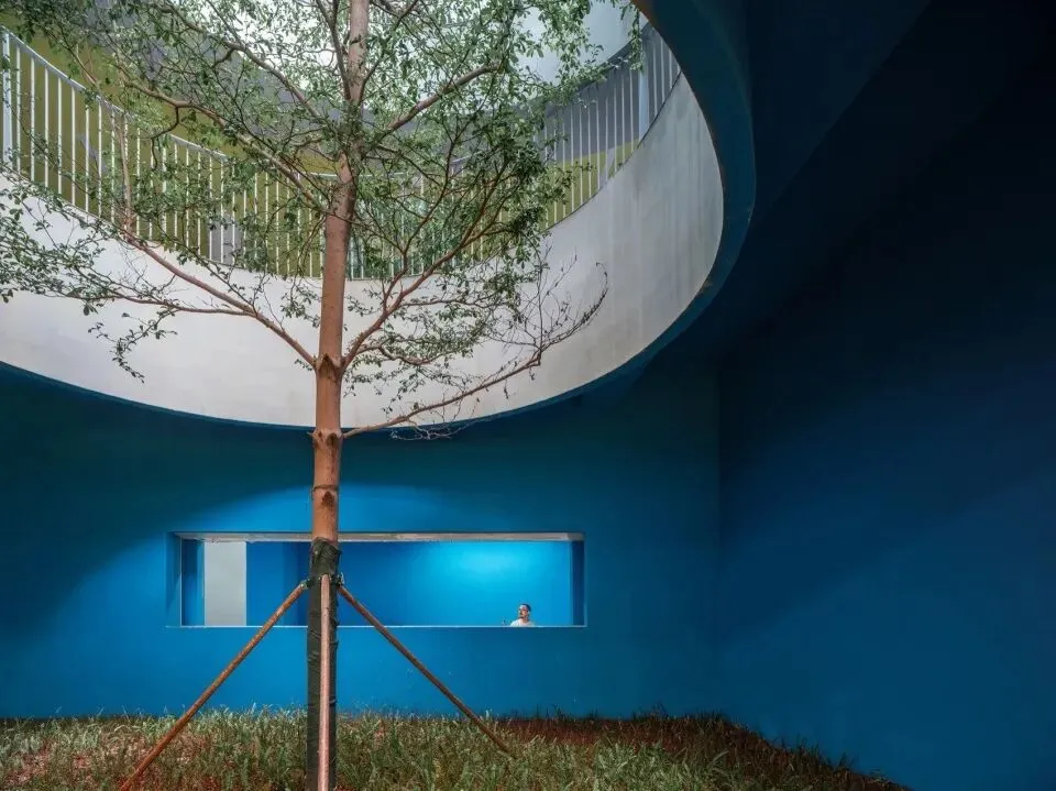 中央庭院不仅是视觉焦点,更是学校各类活动的核心舞台。图书馆、报告厅、体育馆、游泳馆、艺术教室、科学实验室等共享功能空间面向庭院开放,使学习从封闭的教室延伸到整个校园。这种布局鼓励跨年级交流、激发偶然相遇与知识碰撞,将“开放教育”理念具象化为可感知、可体验的空间现实。