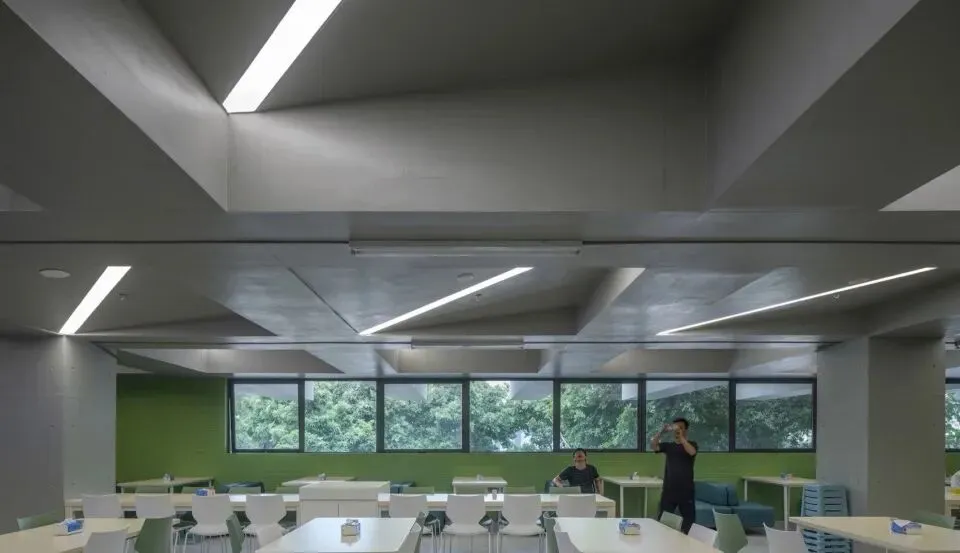 在深圳湿热的气候条件下,多孔设计促进了自然通风和散热。错落有致的开口形成风道,引导气流穿越建筑群;遮阳设施与绿植结合,创造了舒适的微气候。这种设计既降低了能耗,也让学生亲身体验可持续设计的价值。
