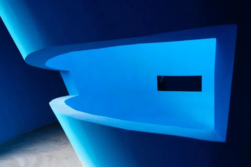 通过水平楼板组织活动空间,强调建筑的水平性,楼板截面整合空调、设备管线,形成一块纯粹的“板”,层与层交错,富有变化。