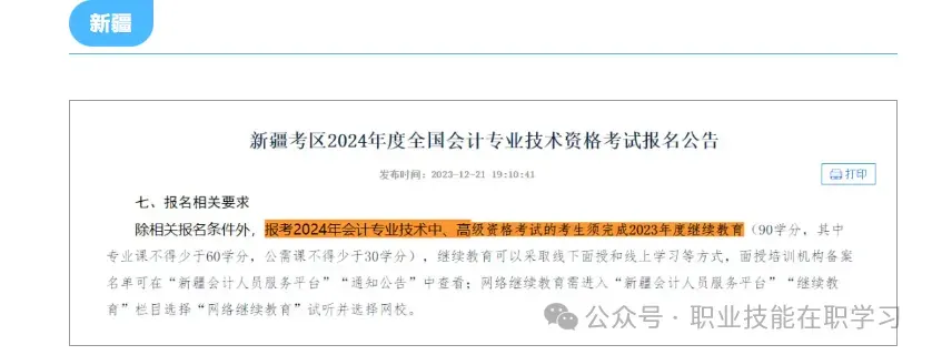 目前,一些地区已经将继续教育与会计职称考试联系起来。例如,在新疆维吾尔自治区,该地区财政部明确提出,2020年初级会计考试必须参加继续教育,否则不具备注册资格!在2019年福建省中级会计考试中,需要提供相应年限的继续教育记录。可以看出,会计继续教育与每个会计人员的晋升有关。