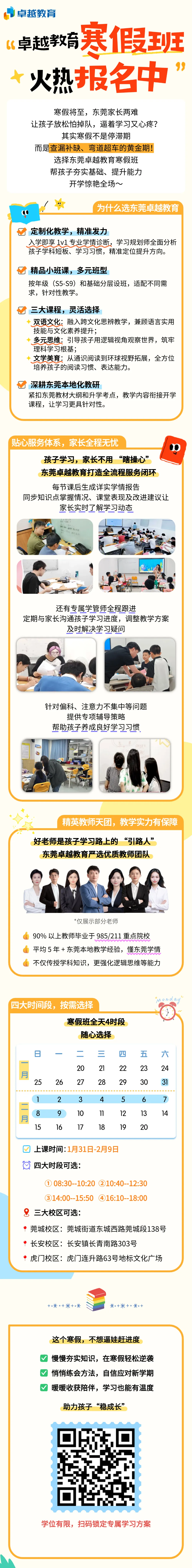 >东莞卓越寒假班:开班倒计时6天,解锁高效学习!