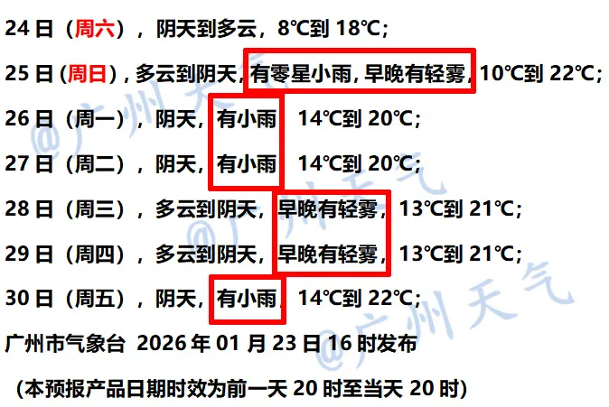 25日起早晚有轻雾,
