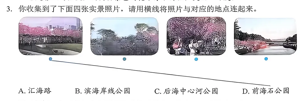 和去年数学卷出圈不同,这次被热议的是语文。福田区一道“公园连线题”先引发争议——要求孩子匹配深圳四个公园的实景图和名称,被家长吐槽“压力太大”,连逛公园都像在完成KPI。