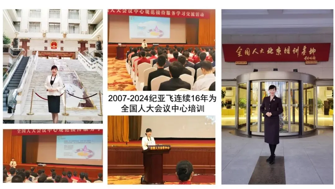 纪亚飞老师:全国人大会议中心礼仪顾问、首都职工文明素质办礼仪指导专家、中国人民大学商学院特邀礼仪讲师、山东卫视《中国礼.中国乐》特邀嘉宾、2023成都第31届世界大学生运动指导专家、2023新疆第十四届运动会接待及颁奖总指导、2022北京冬奥会礼仪指导专家、2021全国十四运颁奖礼仪指导专家、杭州G20峰会礼仪顾问、丝绸之路“一带一路”文博会礼仪顾问、北京APEC会议礼仪指导教师、《两会高端接待礼仪》指定讲师、全国工会指定礼仪书《职业礼仪》作者、15本礼仪畅销书作者、29年培训经验,走过中国31个省份和中国香港地区。