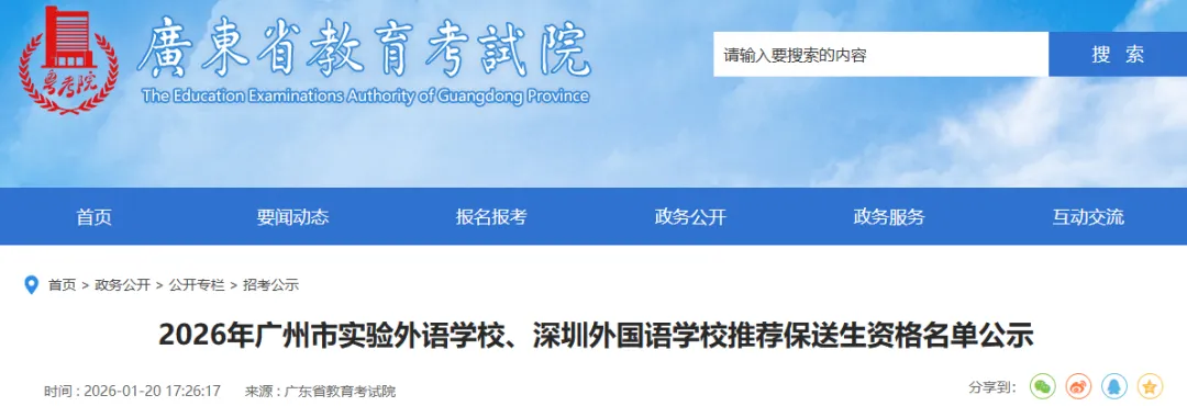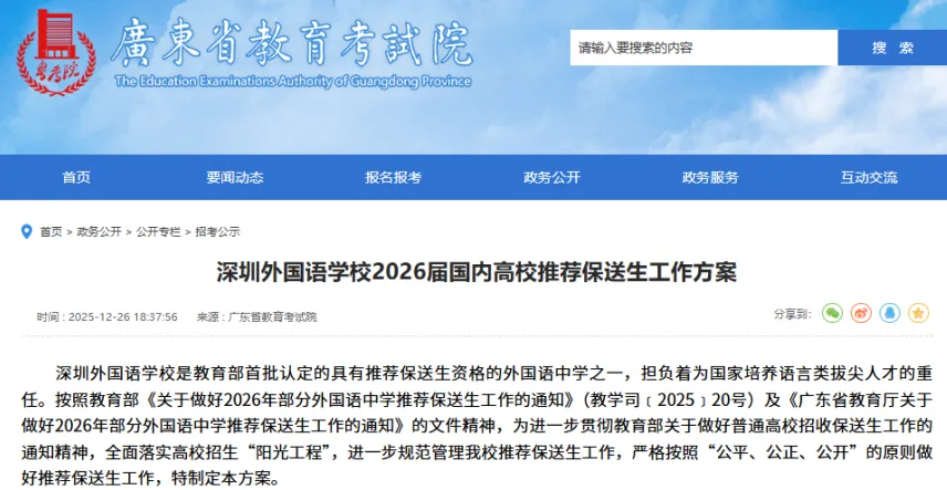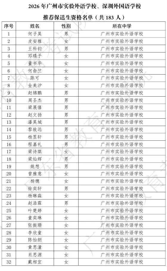 近日,广东省教育考试院公示了2026年深圳外国语学校、广州市实验外语学校推荐保送生资格名单,共计183人。