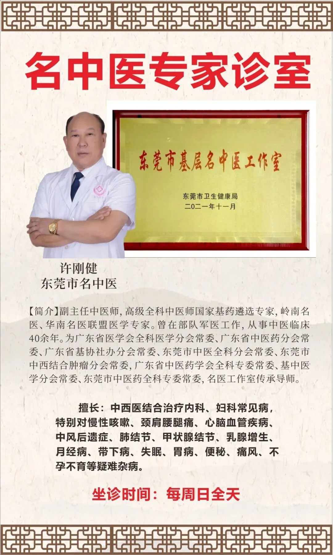 【名医有约】东莞市名中医许刚健定期坐诊,为您把脉健康!