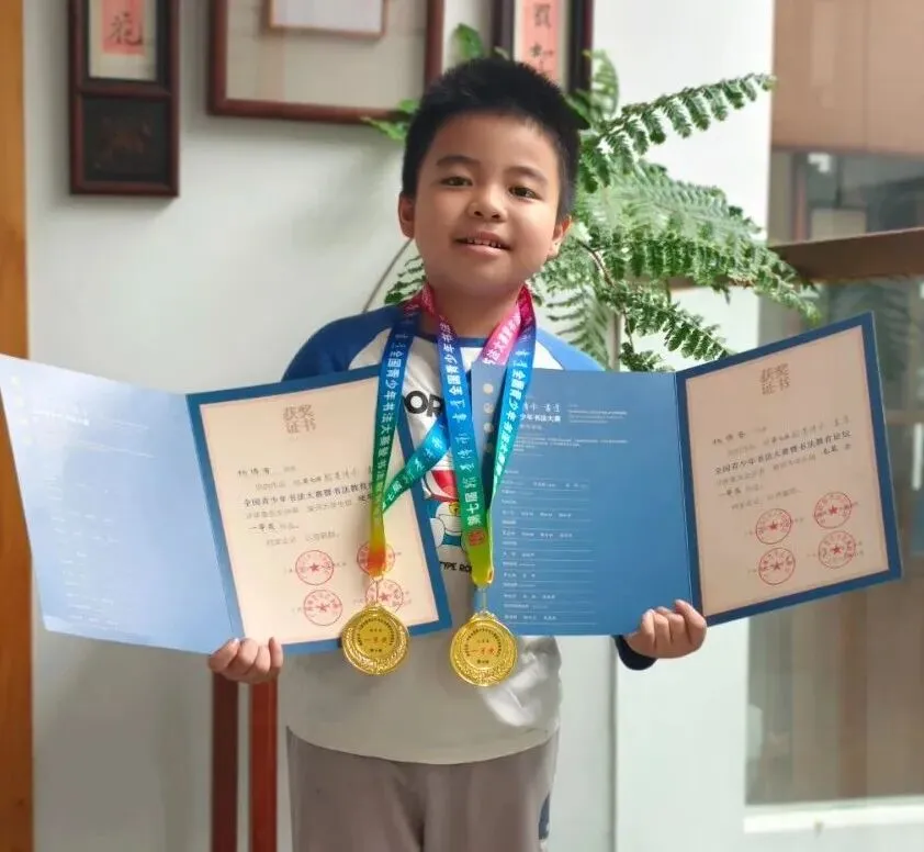 第六,七届翰墨传承•书道全国少年书法大赛小低组硬笔、毛笔获得双金奖。