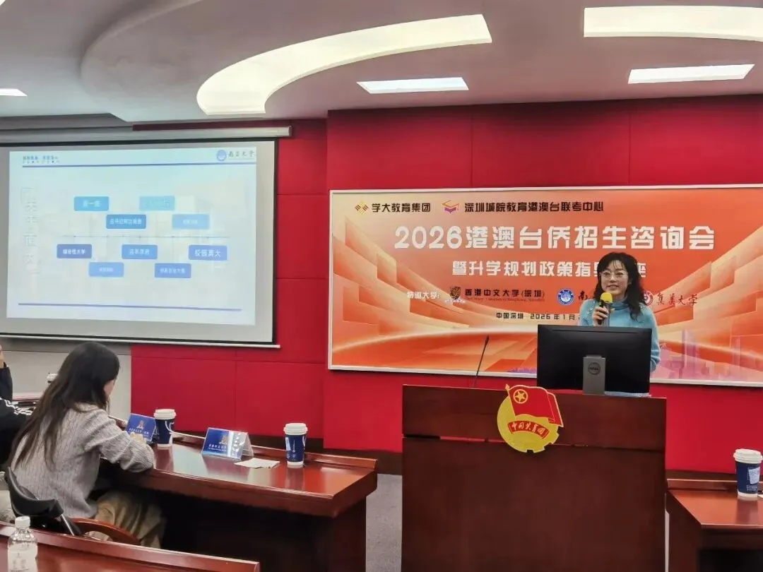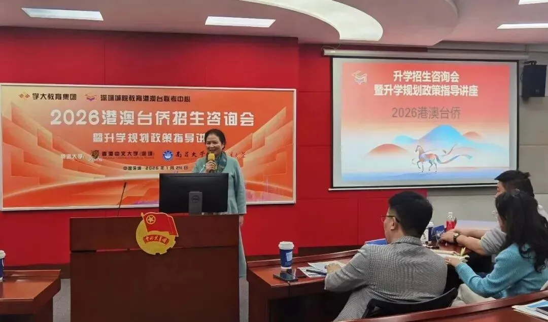 1 月 24 日,深圳福田青年学院报告厅座无虚席,一场关乎港澳台侨学子未来的升学盛宴在此隆重举行!由学大教育集团旗下深圳城院港澳台联考中心倾力打造的「港澳台侨升学招生咨询会暨升学规划政策指导讲座」,汇聚顶尖高校招生官与联考教育专家,为大家带来 2026 年最前沿、最权威的升学资讯。现场气氛热烈,干货满满,下面就跟随我们的镜头,一起回顾这场不容错过的升学盛会!