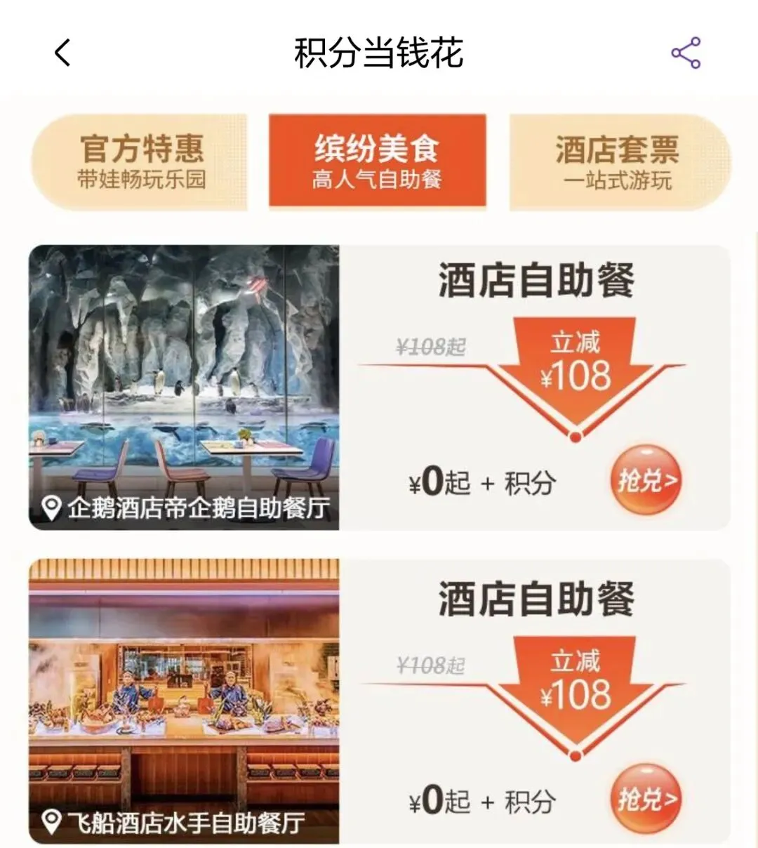 5.单独购买3人*2天早餐,1大1小159+1小68,注意这个可以用积分兑换,不用提前都买好。