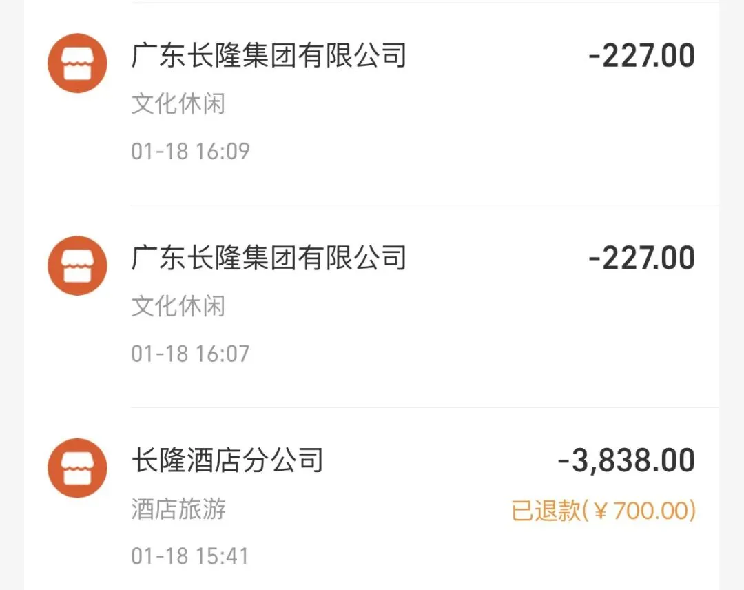 发文前长隆酒店前台给我打电话了,磨叽半天还是原来的说辞,我说我不针对也不为难任何打工人,如果你的权限只是和我解释你解决不了,那就不用浪费你宝贵的时间了……你直接上报客户不满意未解决就行了。长隆APP这个“实付金额”大红字误导性太强了,我没见过其他消费平台这么写的。如果由于支付系统问题扣款不成功,你们也可以写成“应付金额”或者“待付金额”,不能消费者拖家带口跋山涉水来了你们又坐地起价,京东没付款成功前是“应付款”,付款成功是“实付款”,淘宝没付款成功前是“需付款”,付款成功是“实付款”,你们这个没付款成功写“实付金额”,还用大红字……要不你往上反映一下情况吧,我还是觉得长隆集团应该正视这个问题,这也一定不是我一个人的问题。如果我作为法律专业人士都解决不了这个问题,那其他普通消费者更是只能吃哑巴亏,生意不是这么做的。