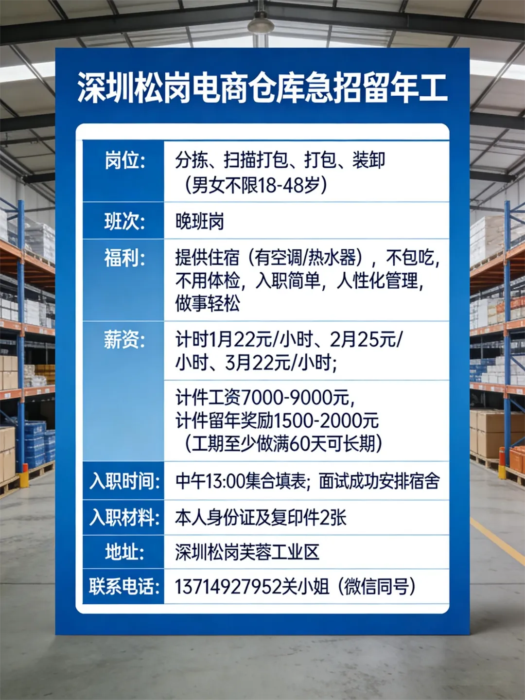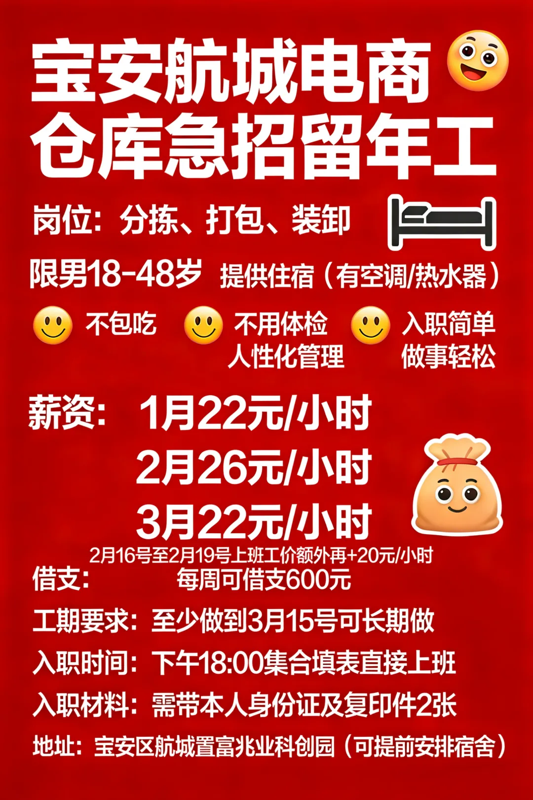 >留年福利炸裂|深圳东莞电商仓库,过年工价46+元+/小时+春节留年奖3000+,打包分拣岗速来