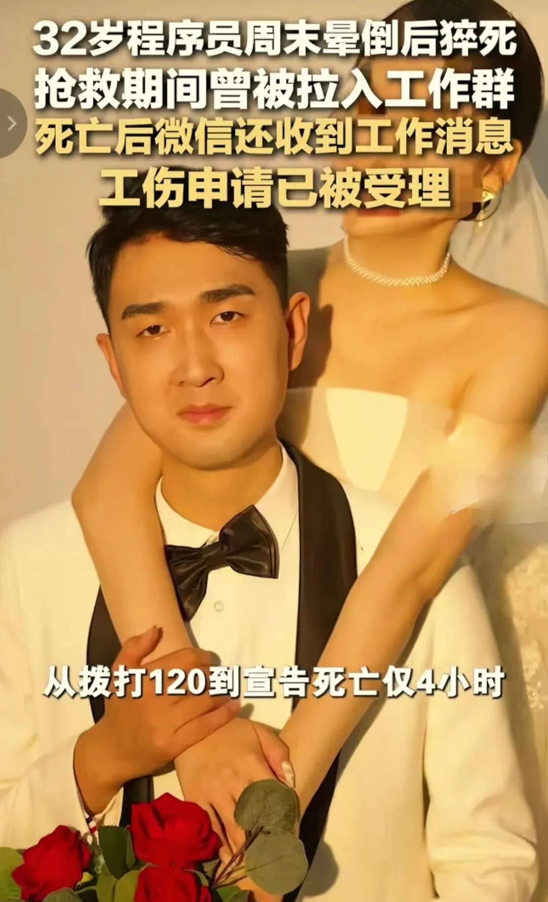 电梯里,他突然晕倒。被120紧急送医的途中,他还被同事将他拉入了一个工作群。真是太讽刺了,明明生命已经进入了倒计时,可是工作却依然没有停止。