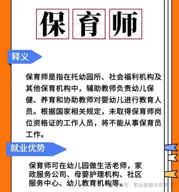 保育师,可以通俗理解为之前的“保育员”(已经于2019年年底取缔)。
