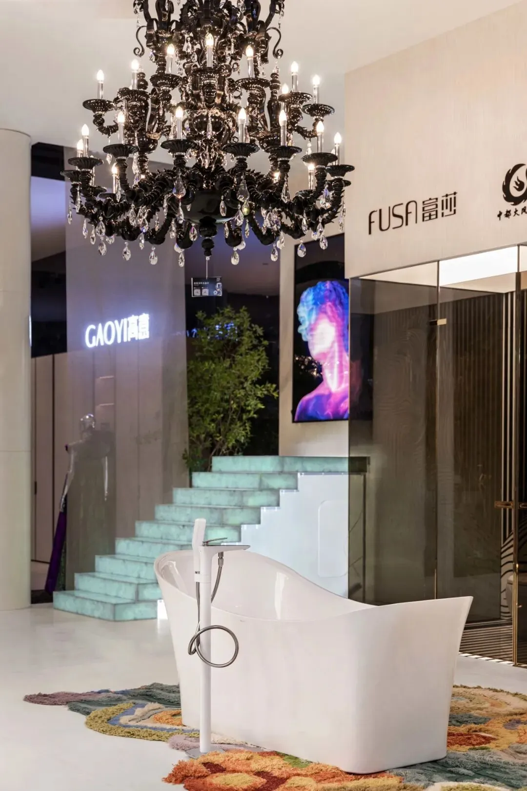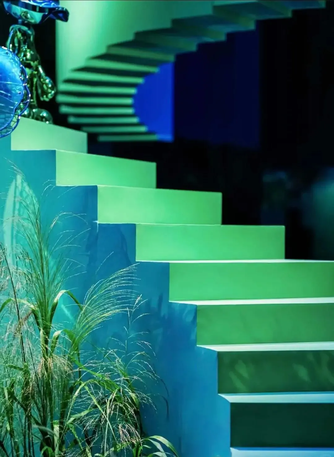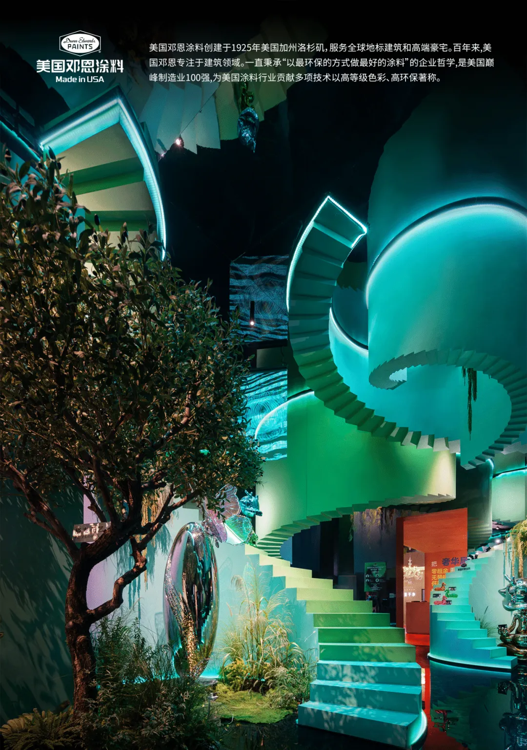 于此,美国邓恩涂料自然色彩,泼洒成一场流动的盛宴。旋转楼梯,链接着大地与穹顶。倒置的天顶,与黑镜中的无限映照,构成一个关于“寻找玫瑰”的莫比乌斯环。全景光设计与皓逸智能联袂,让三原色光在空间中有序流淌;唯雅艺术潮玩点缀其间,与之共舞。